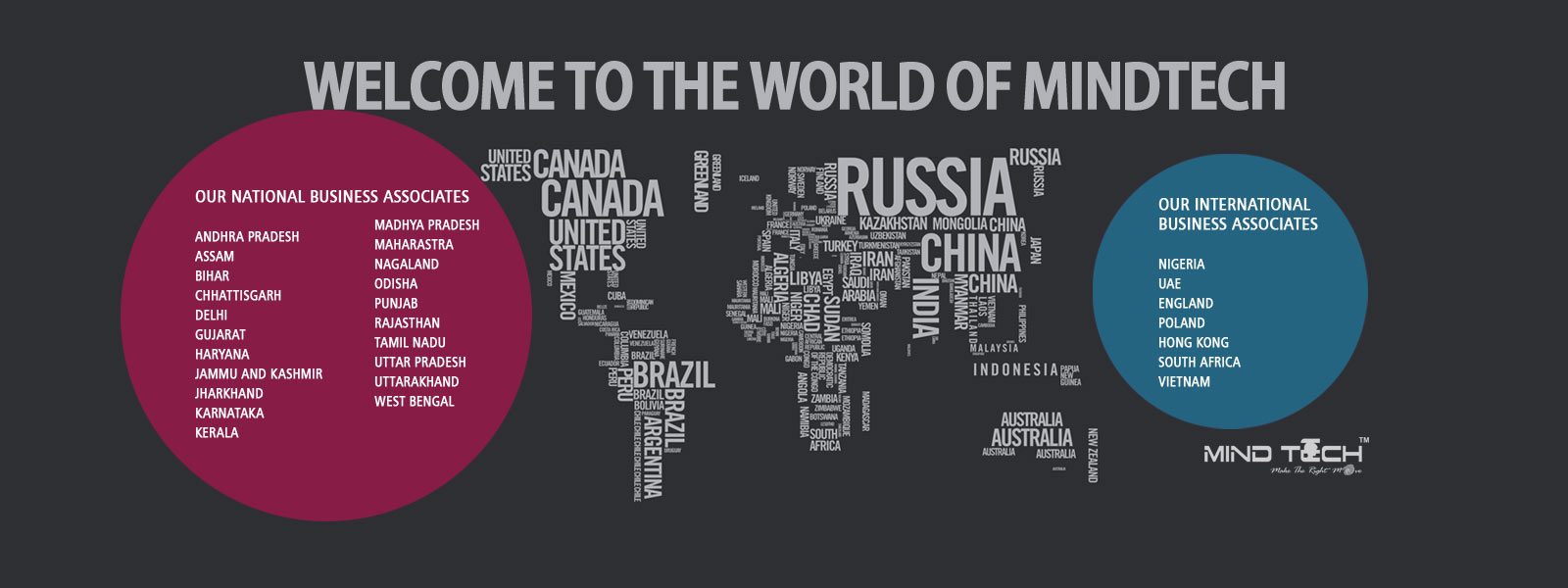 Và cuối năm 2012 Mind Tech đã bắt đầu tạo ra mạng lưới của nó ở cấp quốc gia và hiện tại chúng tôi đang có mạng lưới của chúng tôi ở 20 tiểu bang và 165 thành phố. Trong năm 2017, chúng tôi đạt được mức độ quốc tế ở 17 quốc gia: Nigeria, UAE, Anh, Hồng Kông, Nam Phi, Ba Lan, Việt Nam, Singapore…